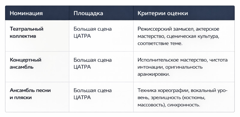 • Квота: По 20 коллективов в каждой из 3-х номинаций (всего 60).